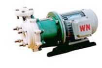 驅動裝置采用主動磁鐵聯軸器直接裝在電機軸上。泵室完全封閉。通過磁力偶合間接驅動泵軸上帶磁鐵的葉輪旋轉結構緊湊、安全節能。是目前最新型的環保型無泄漏化工流程泵.